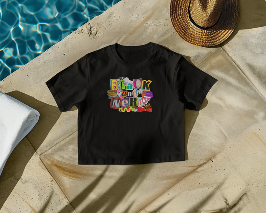 BLACK AND NERDY COLLAGE CROPPED T-SHIRT