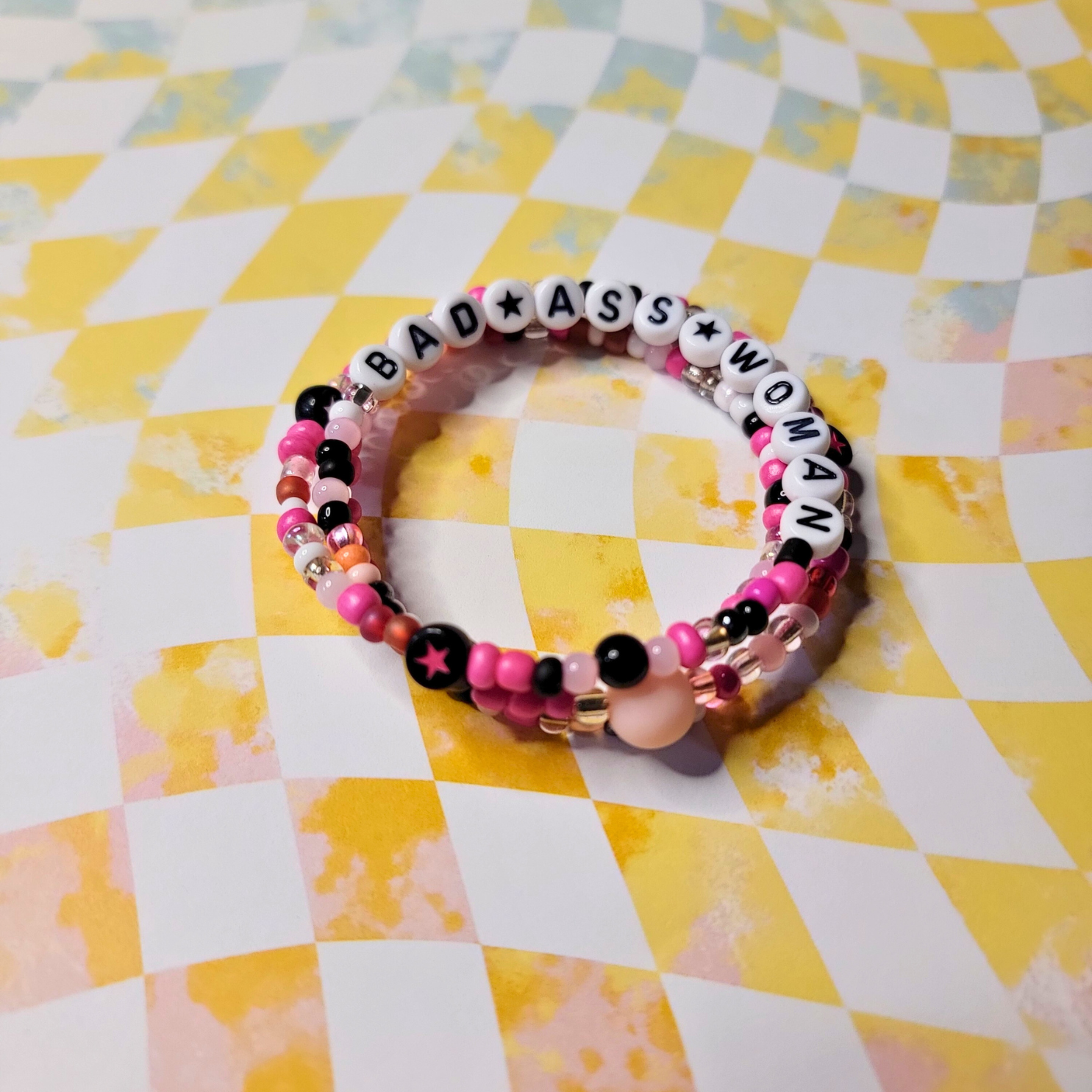 A fresh take on the stacked bracelet look. This wired beaded bracelet delivers the layered vibe in a single, easy-to-wear design that comfortably fits wrists of all sizes. Bead colors are thoughtfully mixed and typically lean toward vibrant, multicolored combinations, while black-and-white letter beads keep the look bold and balanced. Each piece is uniquely arranged, making every bracelet one of a kind.